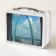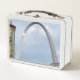 A metal lunch box featuring two photos of the St. Louis Arch.