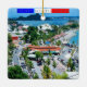 Wonderfully colourful, panoramic view of Marigot Bay taken from Fort St. Louis. The flag colour text image can be moved or removed and the customer can add their own words.