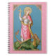 Waiting for baby? Journal your thoughts as you anticipate the blessed event in this lovely notebook featuring St. Margaret on the cover! + According to tradition, St. Margaret (or St. Marina the Great Martyr) laid down her life for Christ during Diocletian’s persecution at the beginning of the fourth century. Though a famous virgin martyr, ironically she is patron saint of expectant mothers and women in labour. The devil in the guise of a dragon, as this unusual patronage’s origin story goes, swallowed her whole. However, the cross she was carrying so irritated the dragon’s innards that he either egested her or ruptured to be rid of her. While even Medieval popes and hagiographers deemed this story fanciful, nevertheless, it was embraced by the laity and by artists if only for its symbolism. And, the cross and the dragon have been her principal attributes ever since. + This image of St. Margaret is particularly fetching. The saint, whose beauty was legendary, stands on the back of a large green dragon that tugs at her cloak with its teeth. She is crowned with a garland of roses, her long blonde hair flowing over her shoulders. She wears a bright pink mantle over a white tunic against a blue background patterned with little white dots and stars. + This product line emphasizes St. Margaret’s patronage of pregnancy and childbirth. The dominant pink and blue colour scheme ties in well with the modern custom of using these colours for girl and boy babies. The mantle’s golden yellow lining allows for a gender-neutral theme. + Feast: July 20 +