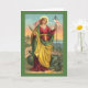 According to tradition, St. Margaret of Antioch (or St. Marina the Great Martyr) laid down her life for Christ during Diocletian’s persecution at the beginning of the fourth century. Our first St. Margaret of Antioch COLLECTION (SAU 038) emphasized Saint Margaret’s patronage of pregnancy and childbirth (q.v.). This one (M 016) emphasizes her patronage of dying people. + As the patronage origin story goes, the devil in the guise of a dragon once swallowed St. Margaret whole. However, the cross she was wearing or carrying so irritated the dragon’s innards that he either egested her or ruptured to be rid of her. While even Medieval popes and hagiographers deemed this story fanciful, nevertheless, it was embraced by the laity and by artists if only for its symbolism. The cross and the dragon have been her principal attributes ever since. + While the story remains the same, the spin that’s placed on it here makes a difference. Like the Old Testament tale of Jonah and the Whale, the story of St. Margaret and the Dragon is an analogy for Christ’s death, entombment, and resurrection from the dead. Clad in a belted dark red gown and enveloped in a golden yellow mantle with an emerald green lining, St. Margaret, stands over the carcass of a large green dragon. The dragon, Satan in disguise, represents evil incarnate. In her right hand, St. Margaret holds a palm of martyrdom; in her left, a Resurrection banner just like the one that the Risen Christ carries on Easter Sunday. (See our Easter COLLECTION for examples.) Typically, such banners are suspended from a standard or from a tall, thin cross and bear a red cross on a white field. Here the cross is more a salmon pink like the ribbon that binds her hair than the usual bright crimson red. Nevertheless, the banner’s symbolism is the same: it signifies victory, victory over death… and the promise of life eternal to true believers. + Feast: July 20 + Image Credit (M 016): Antique image of St Margaret [Margaritha] from a devotional print in chromolithography, original publisher unknown, late 19th century, from the designer’s private collection of religious ephemera.