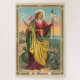 According to tradition, St. Margaret of Antioch (or St. Marina the Great Martyr) laid down her life for Christ during Diocletian’s persecution at the beginning of the fourth century. Our first St. Margaret of Antioch COLLECTION (SAU 038) emphasized Saint Margaret’s patronage of pregnancy and childbirth (q.v.). This one (M 016) emphasizes her patronage of dying people. + As the patronage origin story goes, the devil in the guise of a dragon once swallowed St. Margaret whole. However, the cross she was wearing or carrying so irritated the dragon’s innards that he either egested her or ruptured to be rid of her. While even Medieval popes and hagiographers deemed this story fanciful, nevertheless, it was embraced by the laity and by artists if only for its symbolism. The cross and the dragon have been her principal attributes ever since. + While the story remains the same, the spin that’s placed on it here makes a difference. Like the Old Testament tale of Jonah and the Whale, the story of St. Margaret and the Dragon is an analogy for Christ’s death, entombment, and resurrection from the dead. Clad in a belted dark red gown and enveloped in a golden yellow mantle with an emerald green lining, St. Margaret, stands over the carcass of a large green dragon. The dragon, Satan in disguise, represents evil incarnate. In her right hand, St. Margaret holds a palm of martyrdom; in her left, a Resurrection banner just like the one that the Risen Christ carries on Easter Sunday. (See our Easter COLLECTION for examples.) Typically, such banners are suspended from a standard or from a tall, thin cross and bear a red cross on a white field. Here the cross is more a salmon pink like the ribbon that binds her hair than the usual bright crimson red. Nevertheless, the banner’s symbolism is the same: it signifies victory, victory over death… and the promise of life eternal to true believers. + Feast: July 20 + Image Credit (M 016): Antique image of St Margaret [Margaritha] from a devotional print in chromolithography, original publisher unknown, late 19th century, from the designer’s private collection of religious ephemera.