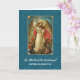 Beautiful traditional Catholic image of St. Michael the Archangel battling the devil. The Prayer to St. Michael is on the inside left.