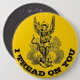 Traditional Catholic image of St. Michael the Archangel in battle with the devil with the text "I TREAD ON YOU." The text and fonts can be modified.