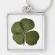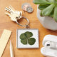 Photograph of a real four-leaf clover on metal keychain. Get Lucky and don't forget the whole collection.