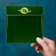St. Patrick´s Day illustration: A golden coin with a shamrock and ribbon on a green background. Matching invitation for this envelope: