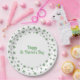 These festive St. Patrick’s Day Shamrock Border Round Paper Plates feature hand-drawn green clover borders along the edge for a clean, classic Irish look. Centered on the plate is an editable “Happy St. Patrick’s Day” greeting printed on the front for a polished party presentation.
