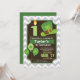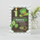 St. Patrick's Day irish thème fête d'anniversaire invitation pour garçon ou fille. Invitation présente un motif de chevron gris et blanc, un casquette vert jour saint patricks et 4 trèfles. Bougie 1er anniversaire personnalisable.