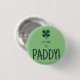 'It's Time to Paddy' with a four leaf clover on a light green background button for sale through our shop.
