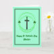 St. Patrick's Day card for your Minister with a green background, a cross, and golden stars around the cross.