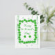 Postcard with my bright design of four-leaf clovers and pretty stars and streamers. Text says "Happy St. Patrick's Day!"