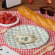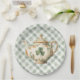 These whimsical St Patrick's Day paper plates features a watercolor Clover Tea Pot with a coordinating green and white gingham background.