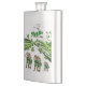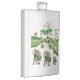 The product is a good size and came exactly as it was pictured. The lid is not attached to the flask, which could be dangerous on drunken nights... The print came out surprisingly well and looks very sharp. Would definitely recommend.
