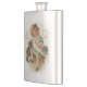 The product is a good size and came exactly as it was pictured.  The lid is not attached to the flask, which could be dangerous on drunken nights... The print came out surprisingly well and looks very sharp.  Would definitely recommend.