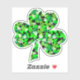A lovely green pattern of Irish shamrocks with white flowers on a black background decorating a single shamrock. This pretty design adds a wee bit of Ireland to your St. Paddy's Day celebration! Shown here on a custom die-cut sticker with two background options. Use them to decorate a scrapbook, card, and more! Customize them any way you like and select from several sizes from tiny to large!