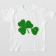 Modern Design for St Patrick's day with a large stylized clover and safety pin. Design on white kids shirt. Matching products for home, office, electronics, clothing and more...