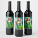 St Patrick's Day Green Irish Fairy 3 Leaf Clover Wine Label