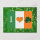 Spread some Irish cheer this St. Patricks Day with this cute green shamrock love heart postcard featuring the colours of the flag of Ireland!