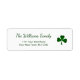St. Patrick's Day return address label, with a simple green shamrock and script typography design. With customizable lettering, you can add your own text. A fun addition to your holiday cards and invitations.
