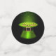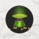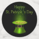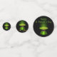A magical St. Patrick's Day illustration featuring green top hat full with golden shamrock coins, sparkling on a black background.