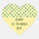 Lovely stickers for St. Patrick's Day, these heart shaped design features a green polka dot design on cream coloured paper. "Happy St. Patrick's Day" is written in dark green. Place your order today!
