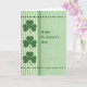 Green stripes and shamrocks is the design for an Irish blessing card. This pretty card is in various shades of green, the left side has stripes with large shamrocks and the right side has a shamrock medium green background.