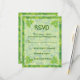 St. Patrick's Day Irish wedding RSVP response card, featuring a green white pattern and an elegant heart made of Irish green lucky clover/shamrock.