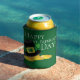 Happy St. Patrick's Day can cooler with a black leprechaun hat and gold coins design.