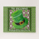 Cute Irish green St Patrick's Day leprechaun's hat on a Jigsaw Puzzle with abstract shamrock patterned background. Quirky font typography details and year can easily be customized with your own personal name, greeting and the appropriate year. A fun and unique gift idea for family and friends who celebrate the 17th March holiday festivities.