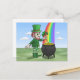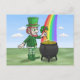 A cute leprechaun has found the pot of gold at the end of the rainbow.