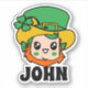 A trendy green shamrock Leprechaun name sticker with a modern calligraphy script font. Perfect for a natural green aesthetic for st patricks day.