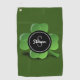 St Patricks Day Lucky Green Shamrock Monogram Name Golf Towel