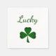 St. Patrick's Day lucky napkin, with a green shamrock design on a white background. With green script typography lettering, you can customize with your own text. Great for your St. Patrick's Day party or celebration.