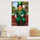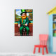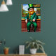 A man with blonde hair and beard in green clothes and a big green hat. This is a AI generated art.