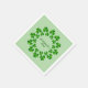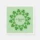 Paper party napkins for St. Patrick's Day with green shamrock in a circle against a lighter green background.