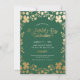 This classy and elegant Saint Patrick's Day (St. Paddy's Day) invitation features a "gold foil" (simulated) four-leaf clover (shamrock) border and the words "St. Patrick's Day Celebration" in a matching gold script font. The background is green, but can be changed to any color of your choice. The back of the card features a gold quatrefoil pattern - also with a green background that can be changed. The details of your event can be customized to any color or size font of your choosing.