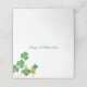 This folded name place card is shown in white with a festive St. Patrick's Day leprechaun clovers print and has a green colour inside to it.