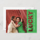 Simple and elegant Saint Patrick's Day picture postcard templates, by red_dress, featuring a full image showing through the word "(So) Lucky". Written against a green background are the words "Happy St. Patrick's Day".