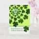 Beannacht Lá Fhéile Pádraig. Happy St. Patrick's Day greetings in Irish Gaelic written on the cover. English verse inside can be changed or customized. Shamrock corsage floral design. Paper greeting card with customizable interior areas for text and photo if desired. Art, image, and verse copyright © Shoaff Ballanger Studios, 2021.