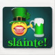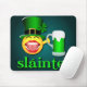 St. Patrick’s Day Smiley Face © Sunny Mars Designs. This St Patrick's Day mousepad features an illustration of a laughing smiley face wearing a leprechaun hat and holding out a glass of frothy green beer or ale. Below the illustration is written in text "Sláinte" which is an Irish toast that means "to your health".