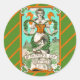 Green and Orange are the colours of Ireland, as shown on this sticker that shows an Irish lassie, with shamrocks, landscape, and the words Erin Go Braugh. These St. Patrick's Day stickers come in two sizes, large (sheets of six) and small (sheets of 20). Stickers have hundreds of uses! Seal your St. Patrick's Day cards, decorate envelopes, cell phone cases and hats, create your own buttons, make your own wrapping paper or greeting cards. They also make fun gifts for children. Customize your stickers by adding text or changing colours!