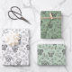 These festive St. Patrick's Day skull wrapping paper sheets features intricate illustrations of decorative sugar skulls adorned with Irish hats and scarves, against a selection of elegant white and green backgrounds. The pattern also incorporates clovers and shamrock coins for added charm.