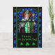 Beautiful stained glass image of Bishop of Ireland, St. Patrick himself. The inside has an Irish Prayer of the Faithful and an Irish Blessing.