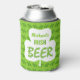 Enjoy a nice Irish beer this Saint Patrick's Day with this cool, personalized beer can foam cooler. It says, "[Your Name] Irish Beer." The word "beer" looks like green bubbles. A white shamrock fills the centre, and the background has a green clover pattern. Top off the mornin' with a beer in this custom can cooler.