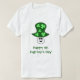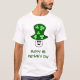 A cute mushroom with shamrock spots. Below is the message "Happy St. Patrick's Day" in green text.