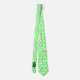 A tie with white shamrocks on green, with a green cartoon mushroom at the tip.