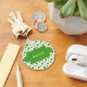 Personalize this cute design of colourful four leaf clovers with a name or text. The background is a pattern of yellow, light green and dark green shamrocks. In front of the festive pattern is a green, customize-able label with matching yellow dotted border. This would make a great purchase just before St. Patrick’s Day!
