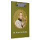 If you would prefer to personalize the back panel or leave it entirely blank, simply delete the image and name of the featured saint. + If bullied youngsters need a heavenly advocate, they need look no further than St. Stanislaus Kostka. Not to be confused with his namesake St. Stanislaus Szczepanowsky of Krakow (1030-1079), St. Stanislaus Kostka (1550-1568) was a young Polish nobleman who was bullied at his Jesuit boarding school in Vienna by his own brother Paul who found his younger sibling’s religious fervour and amiable personality trying. Having run away from school and against the wishes of his family, he joined the Society of Jesus (Jesuits) in 1567. Not 10 months later, he died of a fever on the Feast of the Assumption at the tender age of 17 in, as the saying goes, the odour of sanctity. + Feast: November 13 + Image Credit (SNV 25): Antique image of St. Stanislaus Kostka from a late 19th-century chromoxylographic devotional print published by St. Norbertus Verlag, Vienna, Austria, in the designer’s collection of religious ephemera.