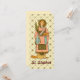 Ajoutez votre texte au verso vierge. + Source de l'image (RLS 17) : Détails figuratifs et ornementaux extraits d'une image ancienne de Saint Étienne (le Proto-Martyr) en chromolithographie avec accents dorés du livre Red Letter Saints : Being a Series of Biographies of those Saints for which Proper Collects, Epistles and Gospels are appointed in the Book of Common Prayer. Imprimé par E. Kaufmann, Lahr, Baden, Allemagne, pour la Society for Promoting Christian Knowledge / S.P.C.K. (Londres, 1911), p. 10. De la bibliothèque privée du designer. + Fête : 26 décembre + Le texte est de couleur brun-rouge foncé (#460000) qui correspond au contour de la figure. + N'hésitez pas à changer la couleur du verso. La palette des « Red Letter Saints » est la même pour les dix-neuf images du livre avec des variations mineures. Elle se compose des couleurs suivantes (avec codes hexadécimaux) : crème (#FEEFBE), jaune moyen (#F1D168), jaune-vert moyen (#999954), aigue-marine clair moyen (#ACCBB1