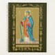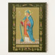 Dans ce portrait en long et en large d'une empreinte dévotionnelle datant de la fin du XIXe siècle, St. Thomas Becket est représenté fidèle à son premier type : il est représenté dans son premier : grand, mince et rasé. Il tient sa croix archiépiscopale dans sa main droite et porte un livre lectionnaire ou évangélique dans sa gauche. Il est gardé dans des comédies canoniques presque complètes, c'est-à-dire qu'il porte un dalmatic rouge sur une tunique blanche accessoirisée de gants violet rouge et d'un miter bleu vif. Il porte probablement aussi sur ses pieds, qui jettent un coup d'oeil sous ses serviettes de peignoir (bas de soie cérémonielle) sur ses sandales épiscopales (basses chaussures ressemblant à des pantoufles ou des pains modernes). Il ne lui manque que la croix pectorale et l'anneau requis. (L'omission d'un anneau est un oubli artistique commun.) Une face bleu vif avec doublure jaune-vert complète l'ensemble. Et puis, il y a l'épée exceptionnellement placée qui perce sa tête miteuse de côté en côté... + Tout au long de l'histoire, l'épée a été l'arme principale défensive et offensive. De nombreux saints, hommes et femmes, ont des épées comme attributs. Dans une étude iconographique en deux volumes d'environ 1000 saints, une épée est associée à plus de 15% ou 150 d'entre eux ! L’épée est un attribut si répandu que sa seule présence est généralement insuffisante pour identifier l’identité d’un saint donné. + Le contexte aide. Certains saints, comme les saints royaux, portent une épée comme symbole du pouvoir séculier. D'autres saints, soldats-saints, brandissent des épées comme symbole de leur profession. En de rares occasions, certains saints portent même deux ou trois épées dont la signification varie. Mais surtout, les saints aux épées sont des martyrs rouges, c'est-à-dire des saints qui sont morts pour la Foi. + Le plus souvent, l'épée signifie la mort par décapitation. Dans l'art narratif, l'exécution elle-même peut être dépeinte. Dans les compositions à silhouette unique, le Saint tient habituellement une lame non bâtie à son point latéral vers le bas ou à son point d'épaule vers le haut. Le placement de l’épée dépend de la longueur et de la longueur de la figure en question ou de la demi-longueur de celle d’un projectile. Dans des formats plus graphiques, l’épée peut être logée dans la tête médialement, coincée à l’arrière du cou, roulée à travers la gorge, ou perçant le coeur ou une autre partie du corps. + Le martyre de saint Thomas Becket par quatre assassins qui brandissent l’épée commença à être dépeint peu après sa mort (voir M 030). Le cadre intérieur d’un autel, le nombre d’assassins avec leurs repères héraldiques respectifs et la présence de son porteur croisé suffisent à distinguer le martyre de Becket de celui de la plupart des autres saints. Les rares représentations de sa décomposition laissent peu de place à douter de qui est dépeint. Les premiers "portraits" de Becket sont toutefois moins caractéristiques. D'intérêt iconographique, de telles représentations ne le dépeignent que comme archevêque sans autre emblème, l'identification étant faite par des inscriptions. Peu à peu, les portraits de Becket ont été munis d’une épée (voir M 033) et de blessures à la tête (K 34). La même étude mentionnée dans le premier paragraphe énumère quelque 35 saints qui étaient évêques ou archevêques associés à une épée. Cependant, un seul, à l'exception peut-être du moins connu Saint Théodard de Masstrict, est représenté par une épée qui coule la tête d'un côté à l'autre : St Thomas Becket. C'est de loin la façon la plus populaire de représenter le Saint aujourd'hui. + St Thomas Becket est le patron du clergé laïc. + Fête : 29 décembre + Crédit photo (P 005) : Image antique de St. Thomas Becket d'une empreinte dévotionnelle de la fin du 19ème siècle en chromoxylographie, publiée à l'origine par Friedrich Pustet, Regensburg, New York, et Cincinnati. De la collection privée de l'architecte de l'éphémère religieux.