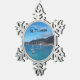 This is a beautiful pewter Christmas tree ornament with a photo of a bay and sailboats in St. Thomas in the Caribbean.